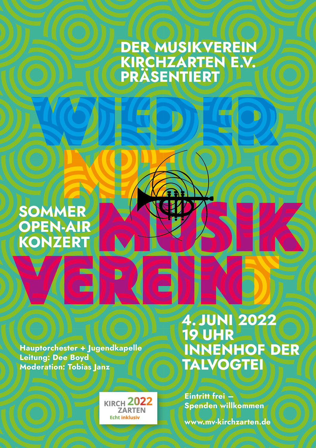 Der Musikverein Kirchzarten unter der Leitung von Dee Boyd freut sich zusammen mit dem Kirchenchor auf Ihren Besuch und wünscht Ihnen schon jetzt einen klangvollen Abend.